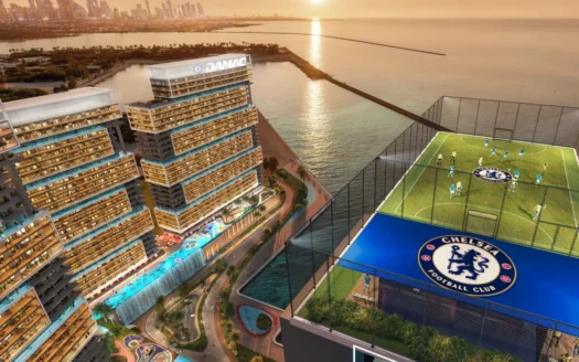 CHELSEA RESIDENCES by DAMAC marks a groundbreaking moment in Dubai’s luxury real estate landscape as the first-ever branded residences in partnership with Chelsea FC. This iconic development redefines seafront living by merging elite waterfront lifestyle with the legendary spirit of world-class football. From majestic Chelsea lion statues at the entrance to a rooftop football pitch, the project is infused with unmistakable Chelsea branding, offering residents a unique blend of sports heritage and high-end living.