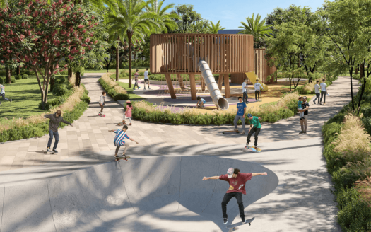 It shows how to live in a friendly community. It’s surrounded by parks, playgrounds, and open-air sports areas. Picture waking up to see green neighborhoods outside your window! The design brings in lots of natural light and fits in well with the green spaces.