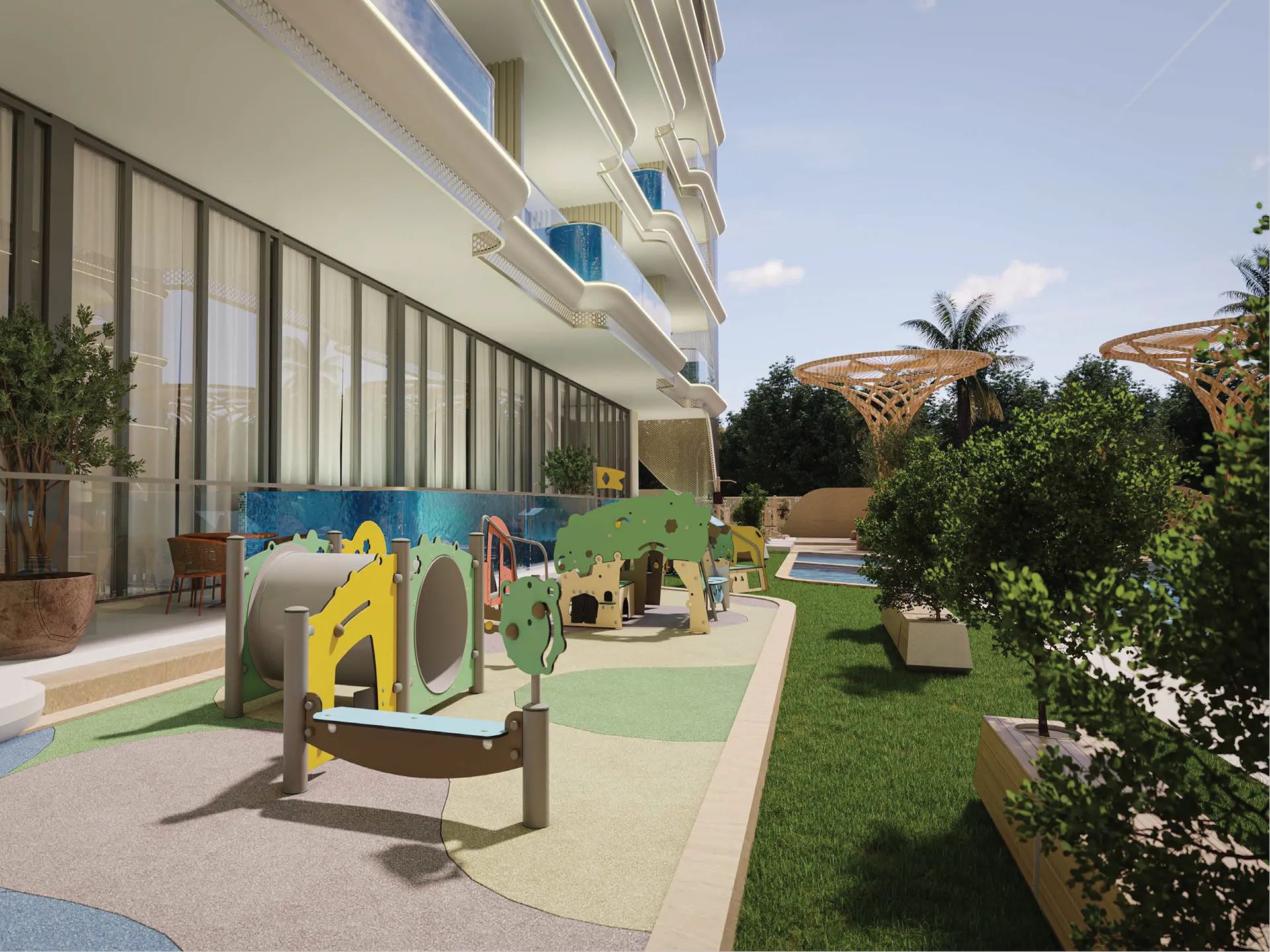 The resident experience at Samana Imperial Garden extends beyond the luxury of your personal space. Pamper yourself in the sumptuous spa, cleanse your mind with yoga in the serene wellness center, or sculpt your physique in the ultramodern gym. Refine your swing at the miniature golf park, and later, share delightful moments with loved ones at the rooftop infinity pool, its iridescent waters reflecting the majesty of Dubai’s skyline.