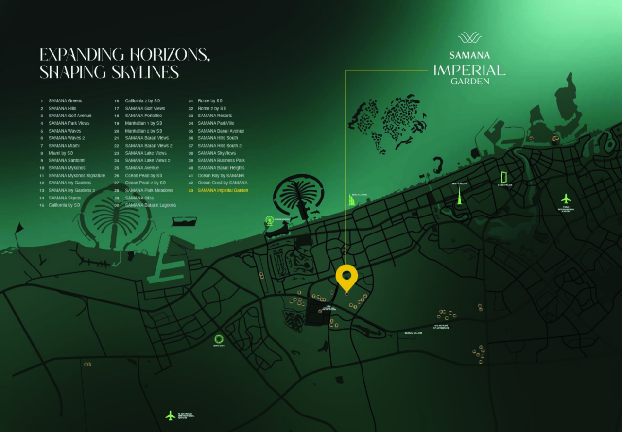 The sophistication and tranquility of Samana Imperial Garden perfectly compliment Arjan’s sought-after location. Living here places you at the heart of Dubai’s vibrant districts, offering seamless connectivity to illustrious landmarks and sweeping beaches. Surround yourself with the city’s most exquisite dining venues, authentic cultural experiences and cutting-edge business hubs, all within moments of your residence.