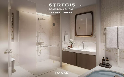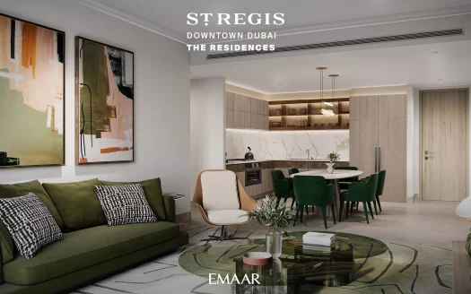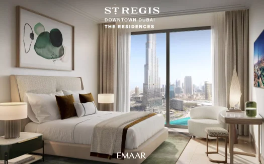 The fancy St. Regis Residences in Downtown Dubai are super posh homes built by Emaar Properties. They’re all about fancy living right in the middle of this lively city. Imagine two cool towers that look modern and fancy, kind of like those old-fashioned art styles.