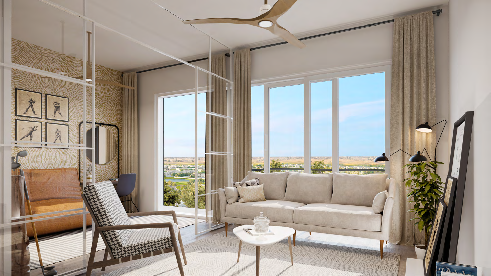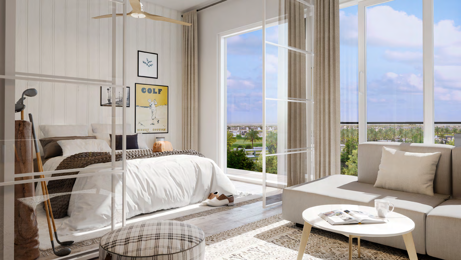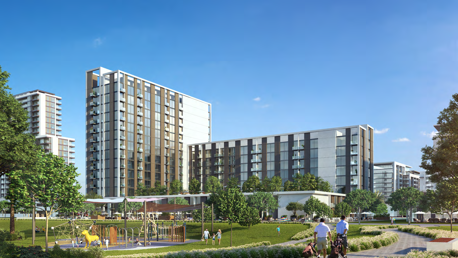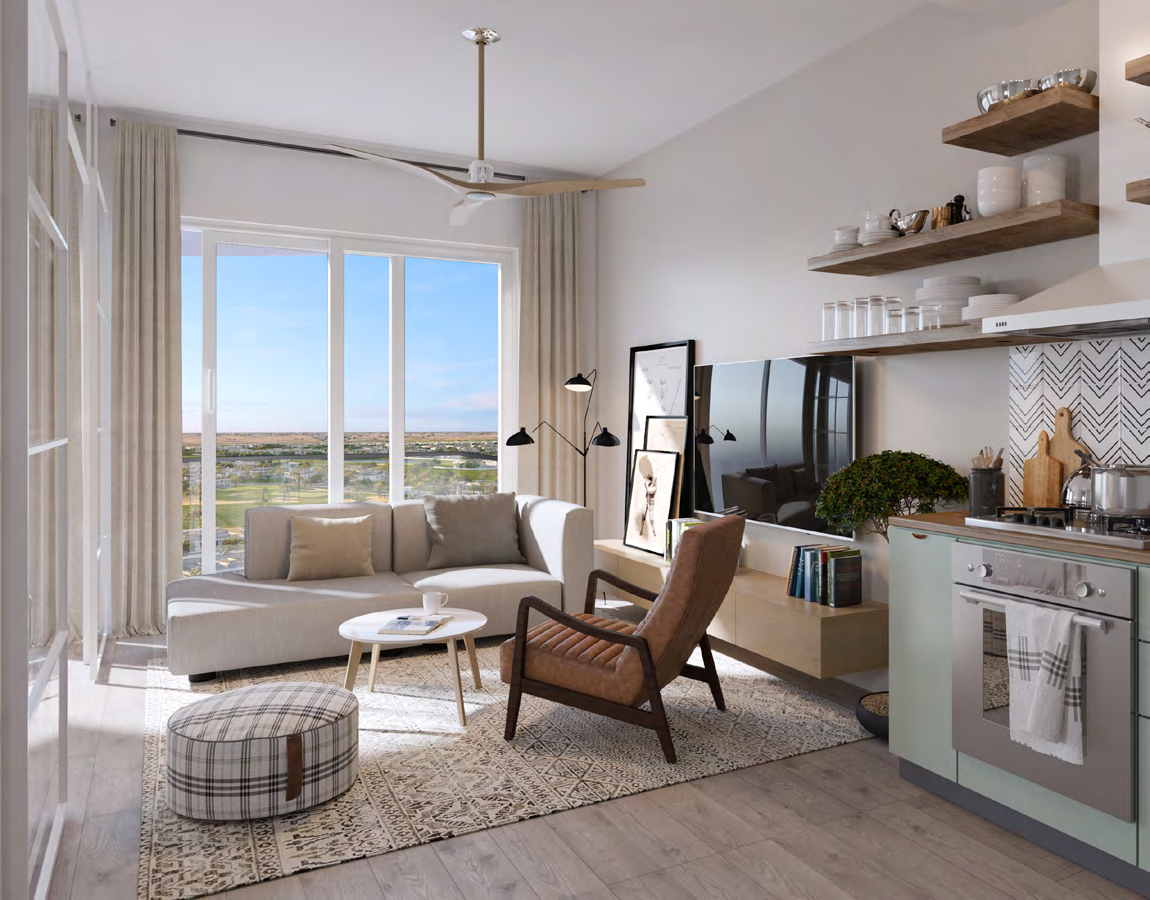 The residences at Golfville feature sleek and stylish 1 and 2-bedroom apartments, thoughtfully designed with open-plan layouts, floor-to-ceiling windows, and high-quality finishes. These homes maximize natural light and offer panoramic views of the golf course and the vibrant community. The interiors reflect a minimalist aesthetic, complemented by modern kitchens and spacious balconies, creating a perfect balance of elegance and comfort.