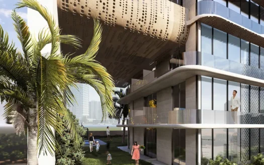 The development promotes harmony between urban living and nature by integrating landscaped walkways lined with lush greenery and palm trees. These serene paths offer residents a peaceful escape from the urban environment, inviting them to take leisurely strolls and connect with nature just steps away from their homes. The commitment to green living is evident throughout the design, from breathing green facades to thoughtfully curated outdoor spaces.