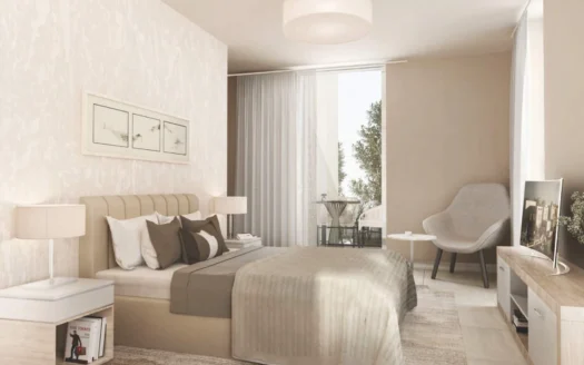 These thoughtfully designed homes come with access to various essential and lifestyle amenities. Within the community, residents can find a grocery store, kids’ playground, pharmacy, nursery, health club, and a selection of eateries and coffee shops, making daily life convenient and enjoyable. The architecture of each apartment exudes a timeless elegance, with modern, clean lines that complement the natural beauty of the surrounding area. The design emphasizes simplicity and functionality, blending seamlessly with the tranquil community.