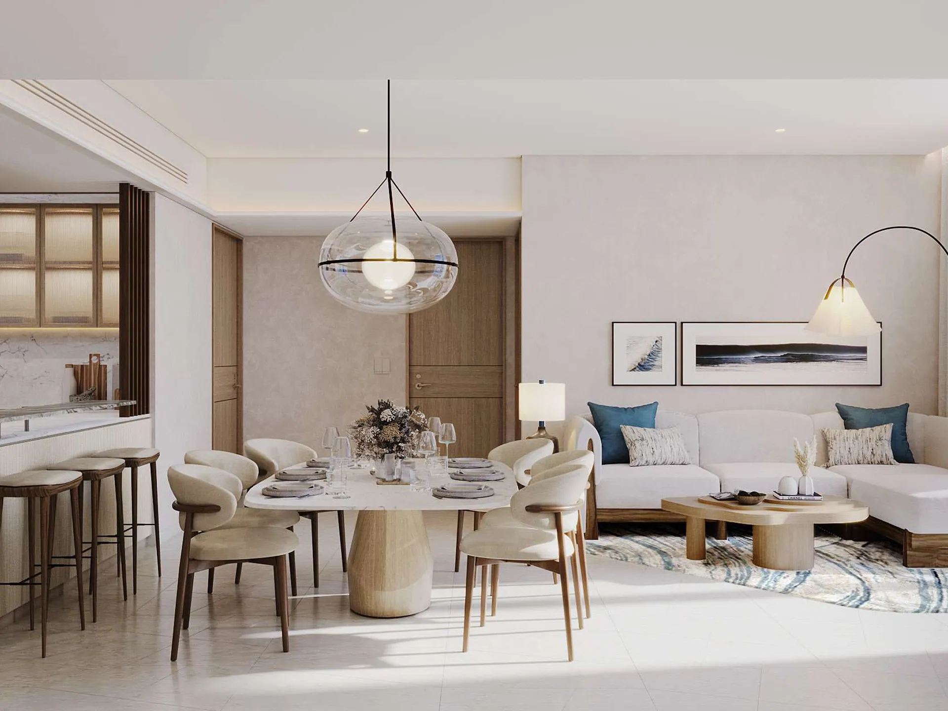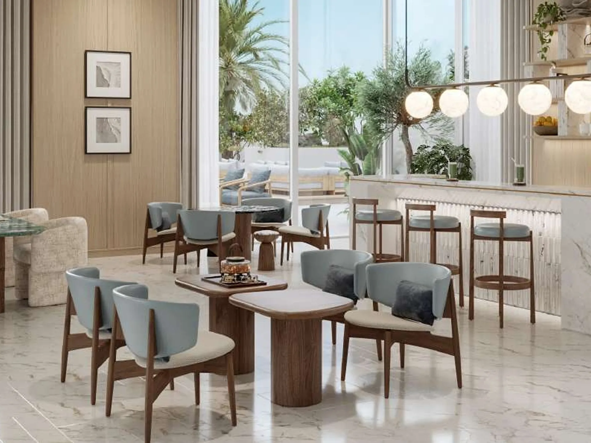 Step inside and feel the embrace of tranquility as an array of meticulously planned spaces unfold before your eyes. The interiors exude elegance and grace, bathed in the warmth of natural light filtering through ceiling-to-floor glass. Marvel at the capacious living spaces that seamlessly blend style and comfort, heightening the pleasure of opulent living. Every detail from the gleaming marble floors to the artful light features exude exceptional craftsmanship, seamlessly combining functionality and aesthetics.