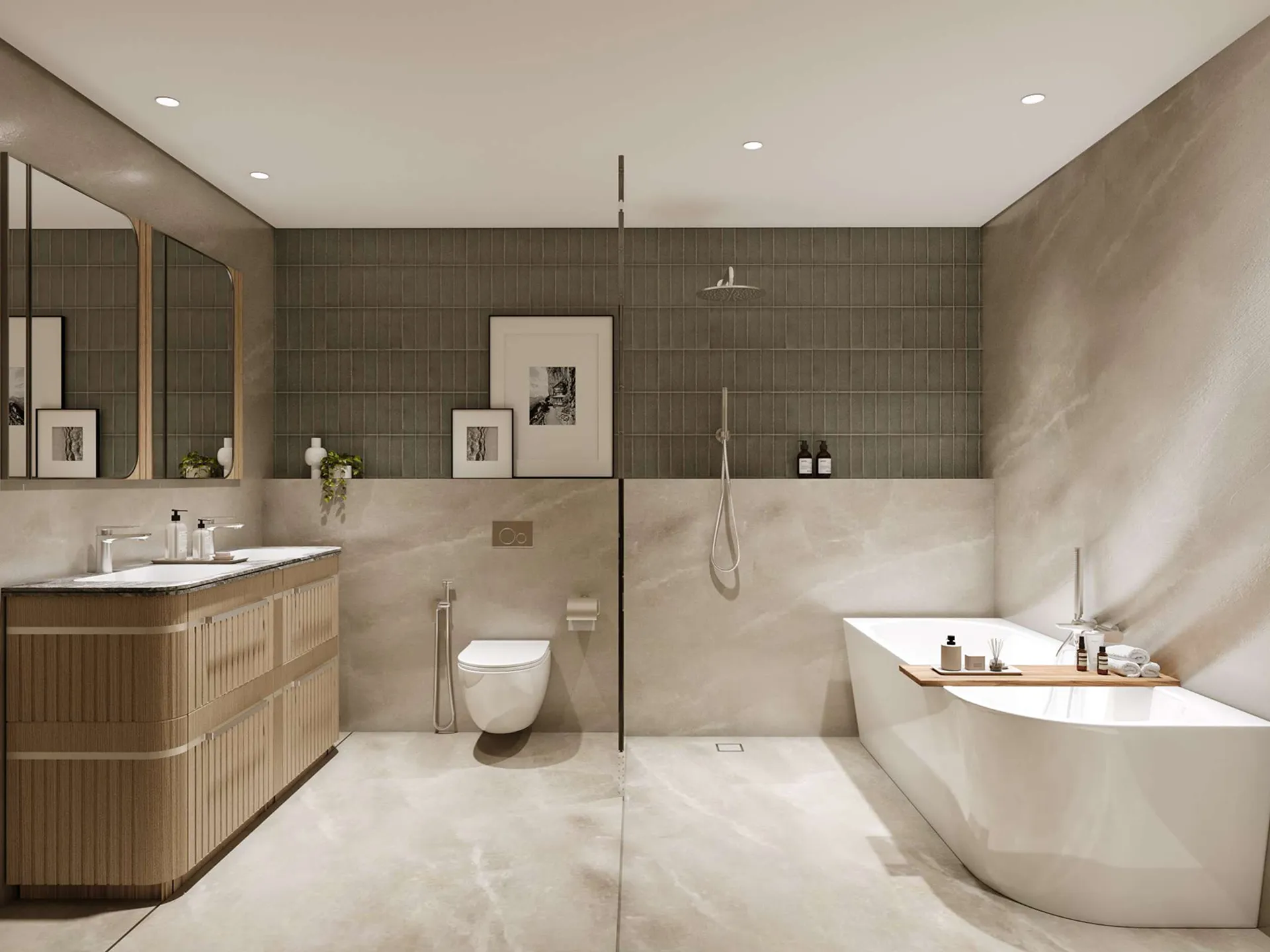 Saria features a sleek and contemporary architectural design, characterized by clean lines, expansive glass windows that maximize natural light, premium finishes, and innovative sustainable elements that harmoniously blend luxury and functionality.