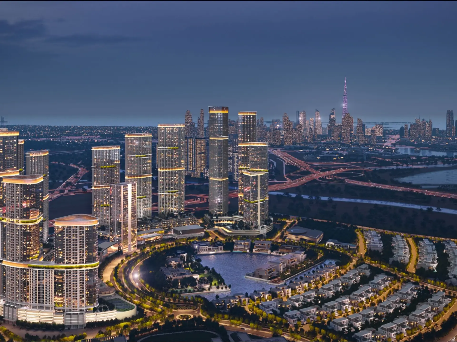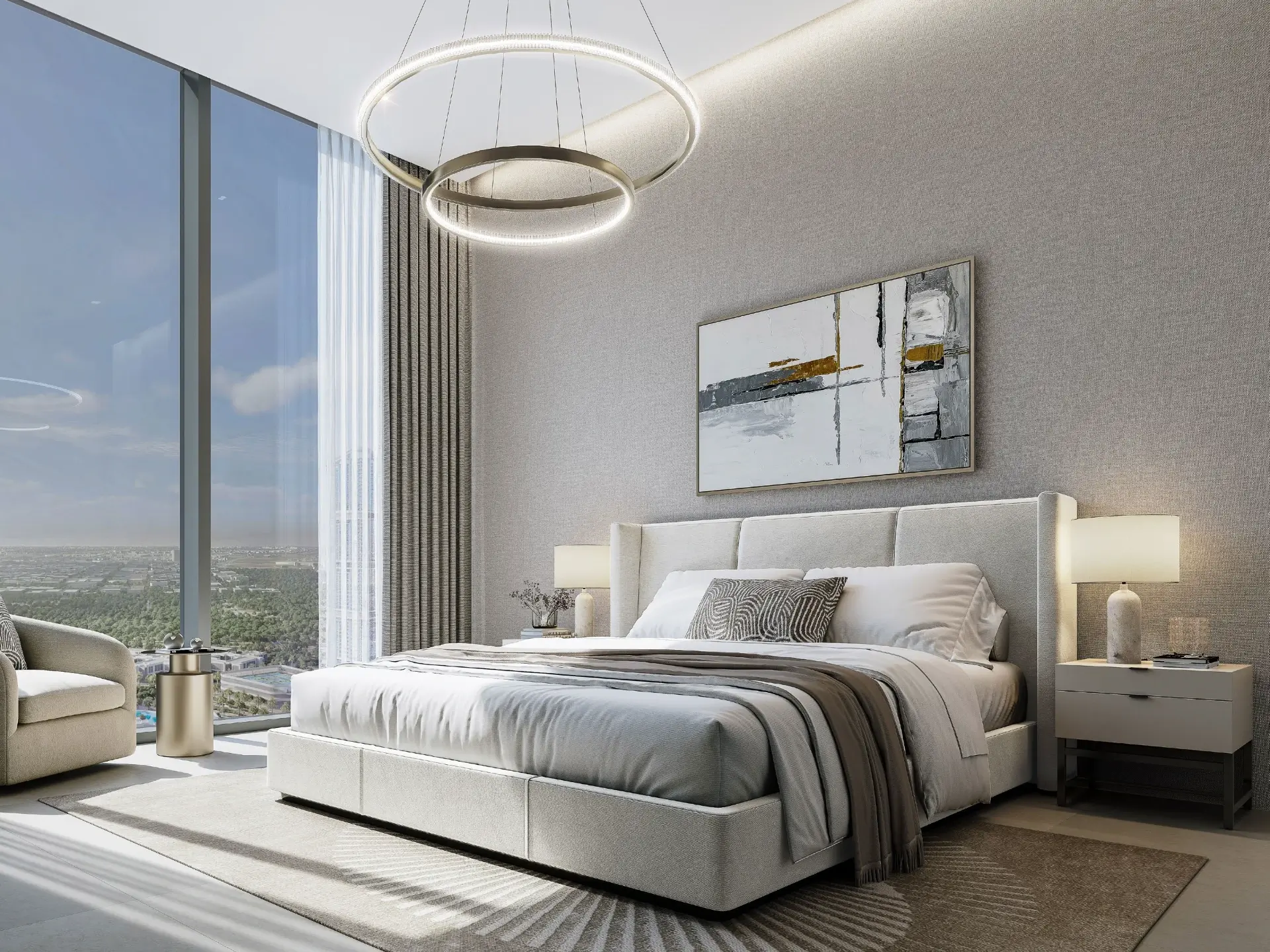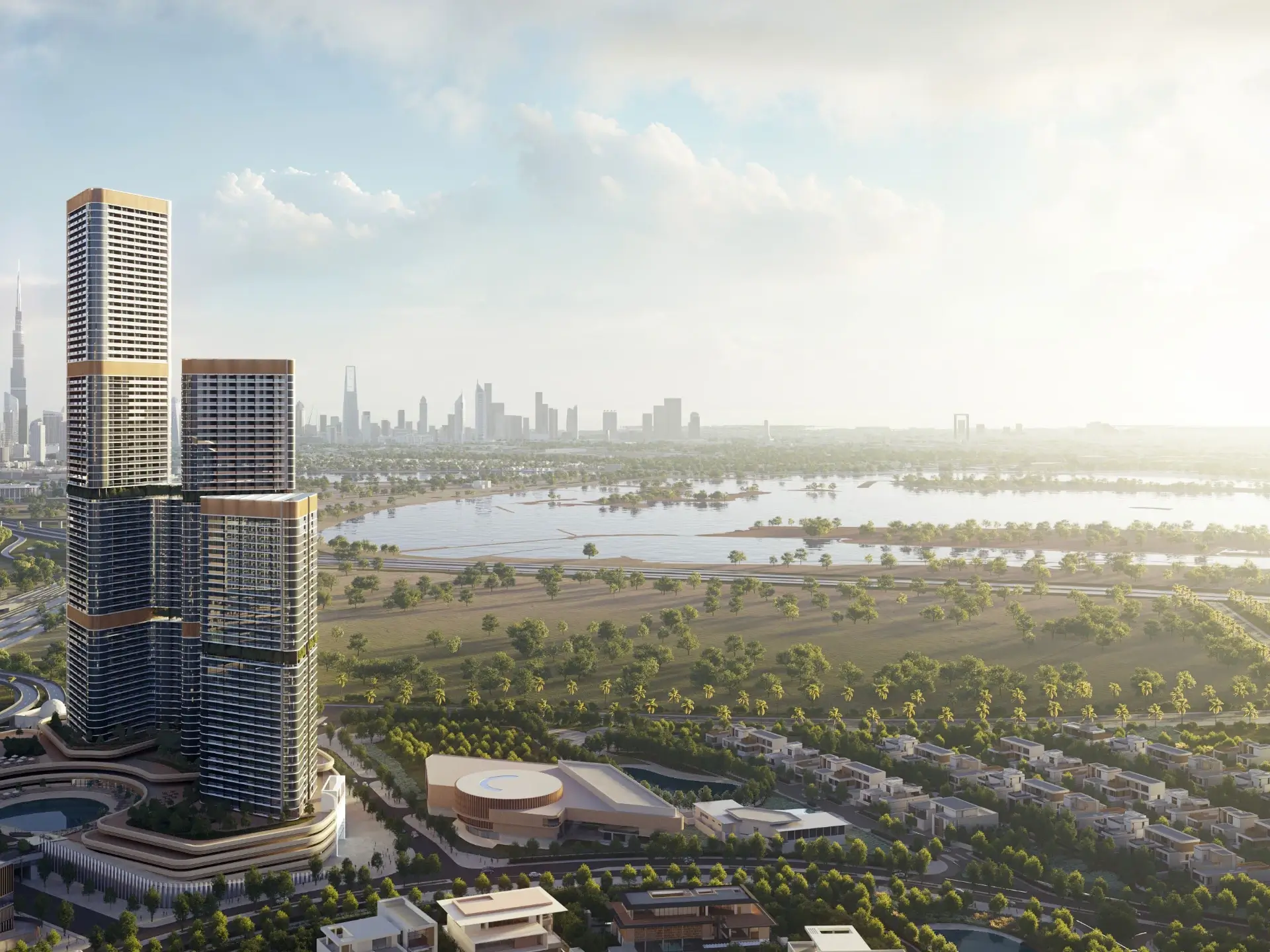 Skyvue Stellar offers curated 1 to 3.5-bedroom residences redefining elevated living . With views of Downtown Dubai and surrounded by lush natural surroundings in Dubai’s most coveted community, it seamlessly blends elegance with stunning views of the tranquil lagoon and the vibrant Dubai skyline .