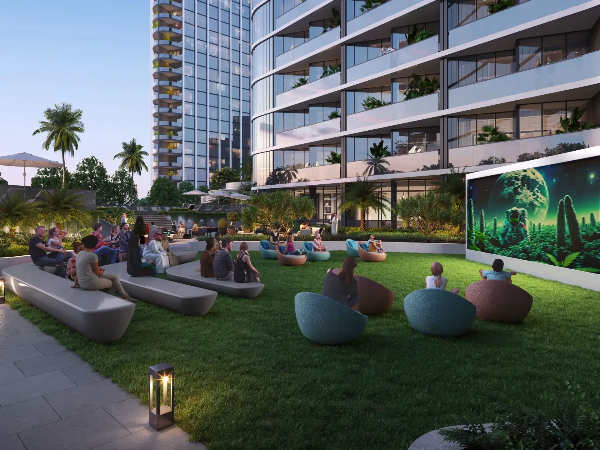 Residents enjoy world-class amenities including an infinity pool, wellness-focused fitness zones, an open-air cinema, and a curated dining experience . The amphitheater at the heart of the development adds to the charm, adapting gracefully to water levels and serving as a focal point for leisure and entertainment .