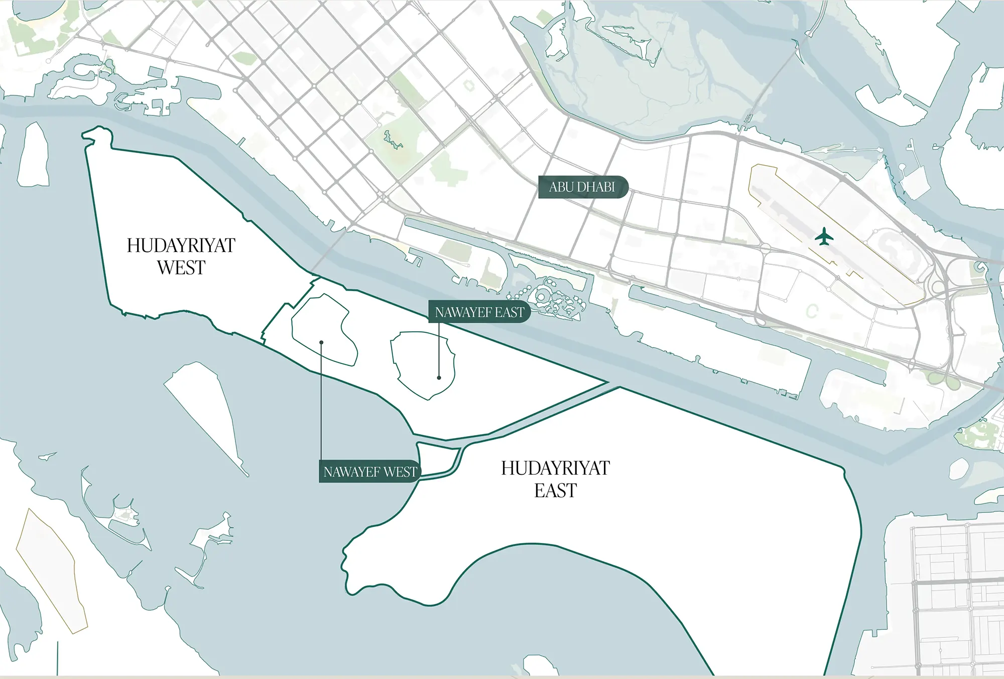 Hudayriyat Island enjoys a prime location along the coastline, surrounded by pristine beaches, lifestyle attractions, and vibrant community spaces. With excellent connectivity to the Corniche, Saadiyat Island, Yas Island, and key destinations across the UAE, residents benefit from seamless access to major business, leisure, and cultural hubs. Its thoughtfully developed setting, featuring modern residences, waterfront villas, cycling tracks, sports facilities, and retail promenades, makes Hudayriyat Island one of the most distinctive and well-connected lifestyle destinations.