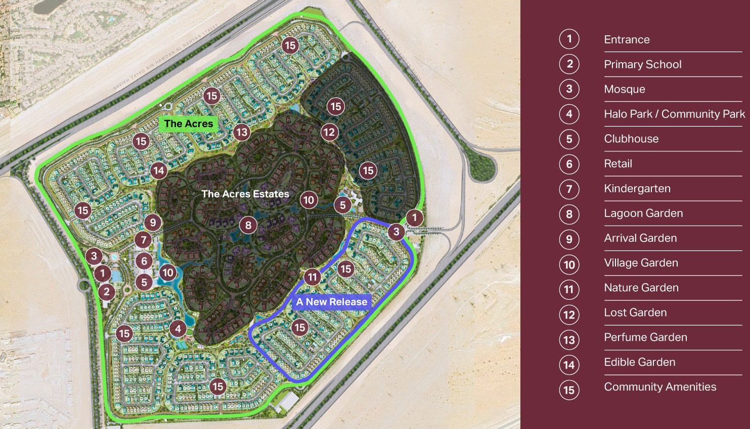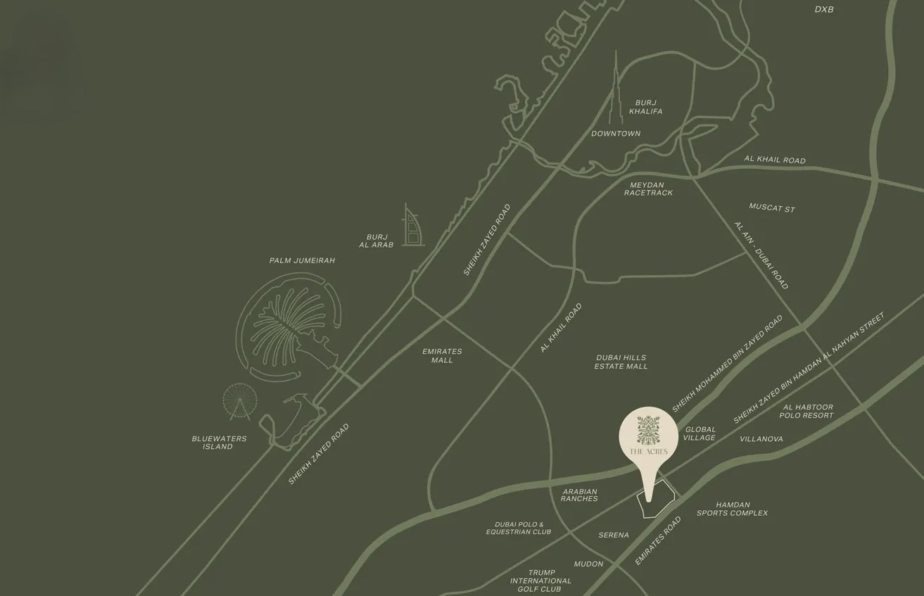 The Acres provide a special way of living close to nature, with big villas tucked in beautiful green plants. This calm neighbourhood is made for people who enjoy peace and beauty. With well-designed homes and great facilities, people can relax in a calm setting while still being close to the lively atmosphere of Dubai.