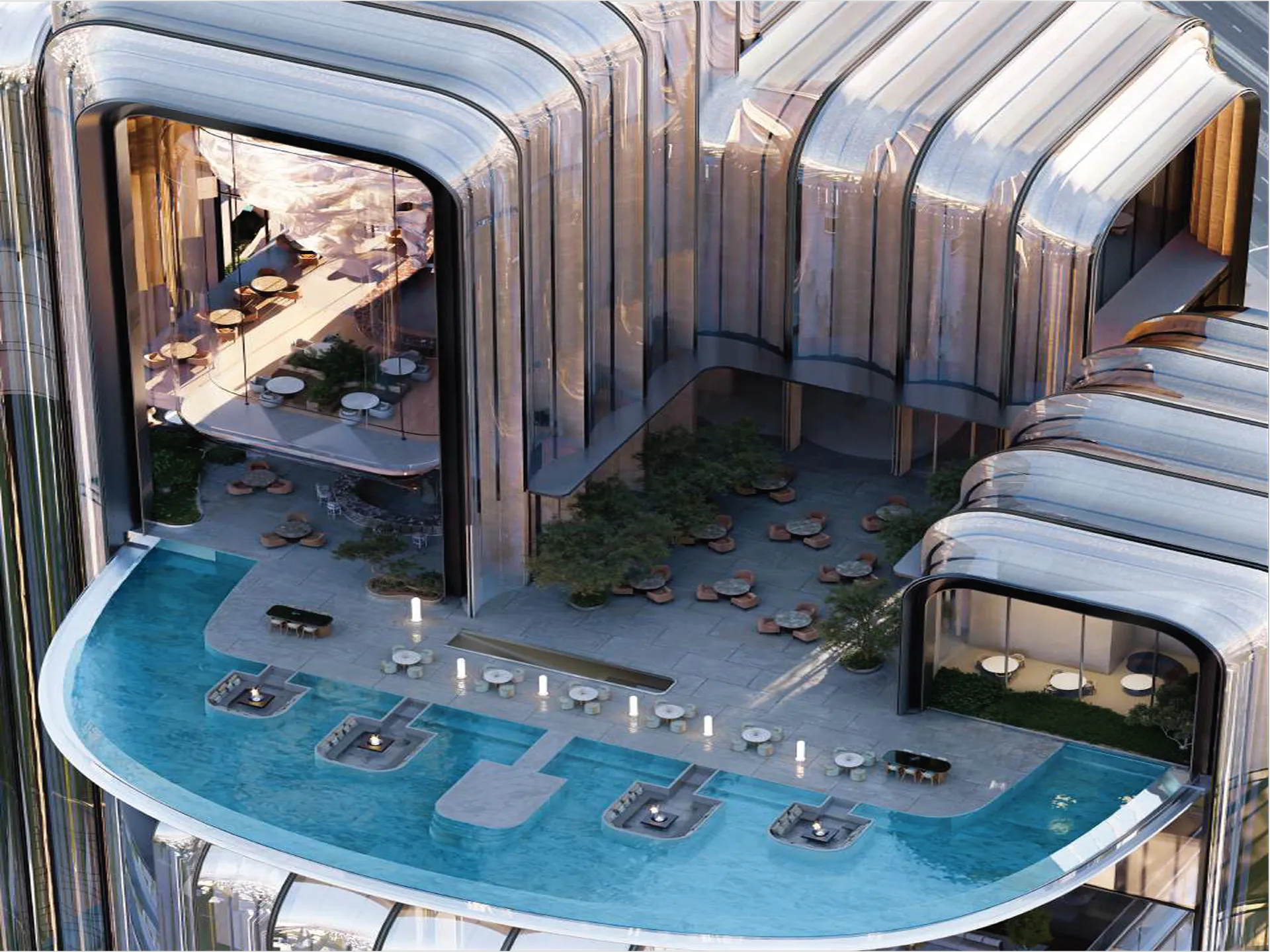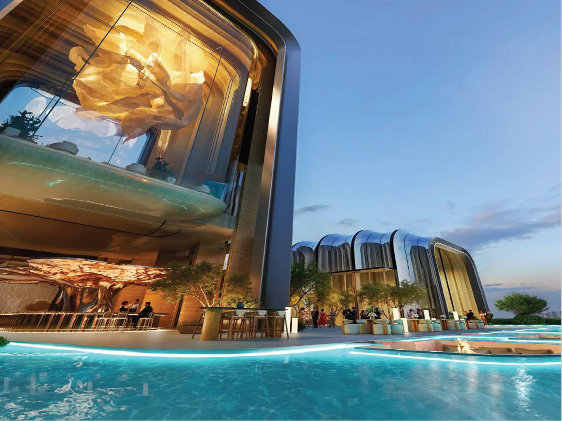 Residents of Lumena Alta enjoy a host of world-class amenities curated to inspire wellness, relaxation, and social connection. From infinity pools overlooking the canal to cutting-edge fitness studios, tranquil spa zones, and elegant sky lounges, every aspect is designed to promote a sense of harmony and luxurious comfort.