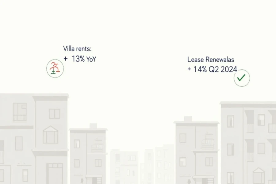 Although villa rentals have shown signs of stabilisation, with city-wide villa rents increasing by 13% year-on-year, apartment rents have continued to grow, rising by 22% compared to the previous year. The number of lease renewals saw a 14% increase in Q2 2024, indicating a trend toward stability in the rental market.