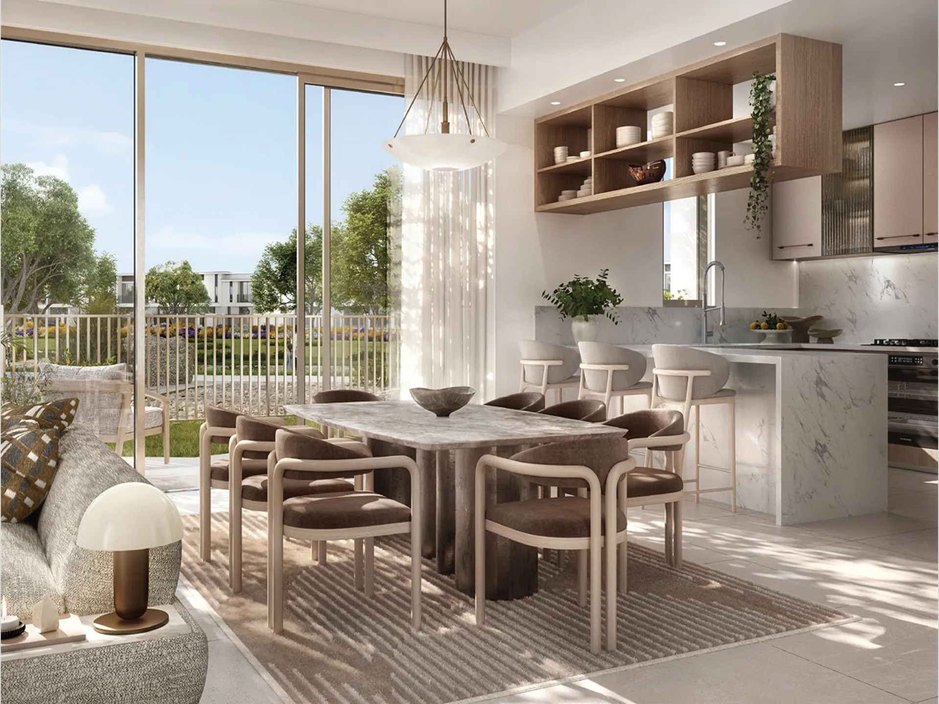 The defining characteristic of this extraordinary residential engagement is undoubtedly its exceptional design. Every villa, set within the lush green landscapes of The Valley, illustrates Emaar’s commitment to unparalleled luxury. Elegance exudes from the walls with minimalist colour palettes that create a vibe of serenity and peace. The effortless blend of contemporary stylishness and tasteful luxury in these homes is a testament to the finest of architectural craftsmanship. Step through a grand entrance into voluminous spaces glowing with natural light, drawing attention to the lavishness of each room’s intricate designs.