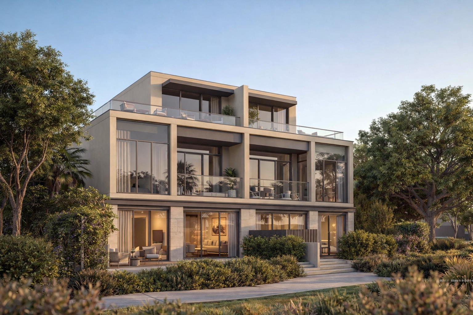 The design focuses on layered living, where indoor and outdoor spaces flow together, with private gardens connected to elevated terraces for a more open and expansive lifestyle.