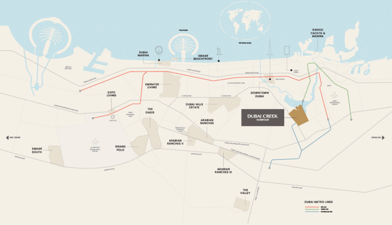 Creek Haven residents enjoy world-class amenities including waterfront promenades, Dubai Creek Marina access, swimming pools, state-of-the-art fitness centers, landscaped parks, jogging and cycling tracks, and dedicated children’s play areas. The community offers comprehensive lifestyle facilities with retail outlets, dining venues, schools, nurseries, and healthcare centers all within easy reach. The strategic location provides unmatched connectivity with Downtown Dubai just 10 minutes away, Dubai International Airport at 10-17 minutes, and the Ras Al Khor Wildlife Sanctuary within 5 minutes, making it an ideal address for those seeking both urban convenience and natural serenity.